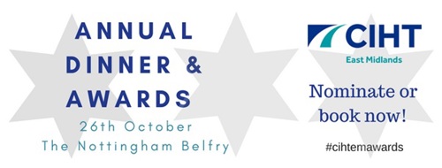 The CIHT East Midlands Dinner & Awards will return in 2018 on Friday 26 October at the Nottingham Belfry hotel. The event recognises the excellent achievements of those working in highways and transportation in the East Midlands and is set to be bigger than ever before with an evening of entertainment and celebration. We are also honoured to be joined by CIHT President Matthew Lugg for the evening.