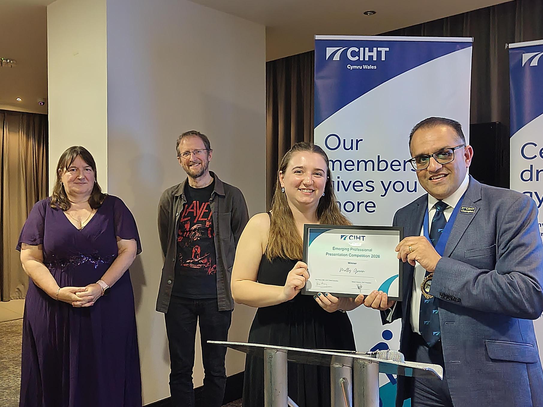 "I was hugely impressed by the quality, confidence and insight shown in the presentations from our emerging professionals. The new competition at the CIHT Cymru Wales Dinner showcased not only the technical ability of the emerging professionals, but also their real passion for the future of our profession. It was inspiring to see such talent coming through and I look forward to seeing how they shape our sector!" Cat Goumal - Head of Education and Professional Development at CIHT |