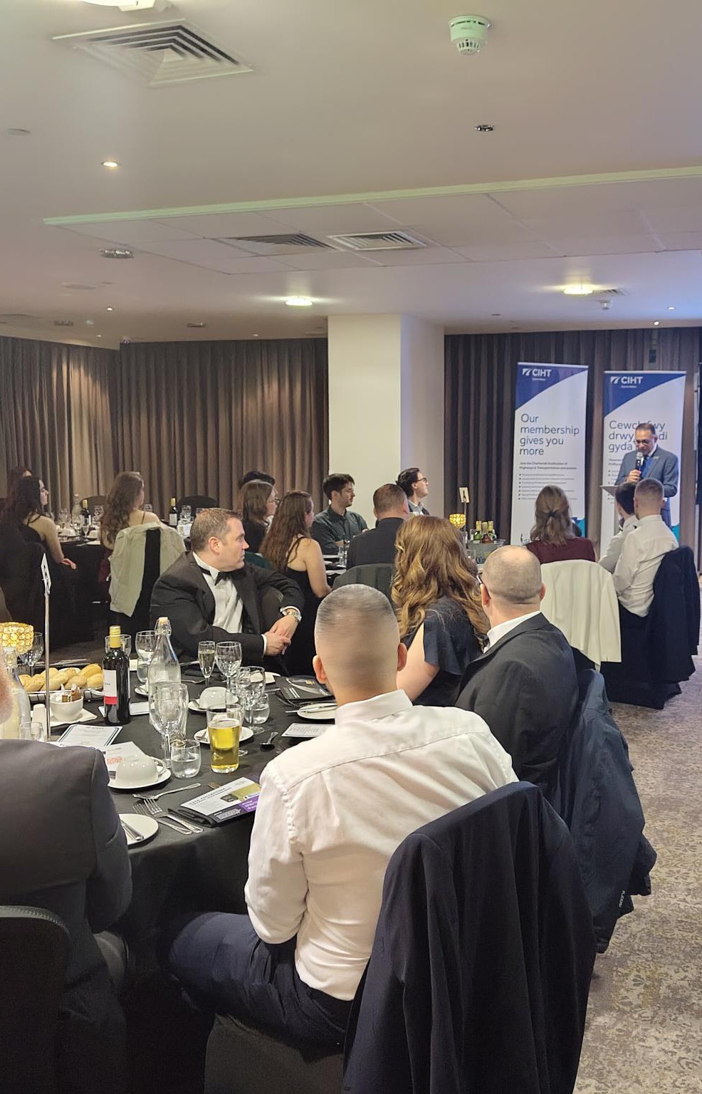 The new venue at Holland House offered an excellent setting for the evening, with arrival drinks allowing guests to network in a relaxed and welcoming environment. Attendees represented a broad cross‑section of the profession, including local and national government, consultants, contractors, and other key stakeholders from across Wales.