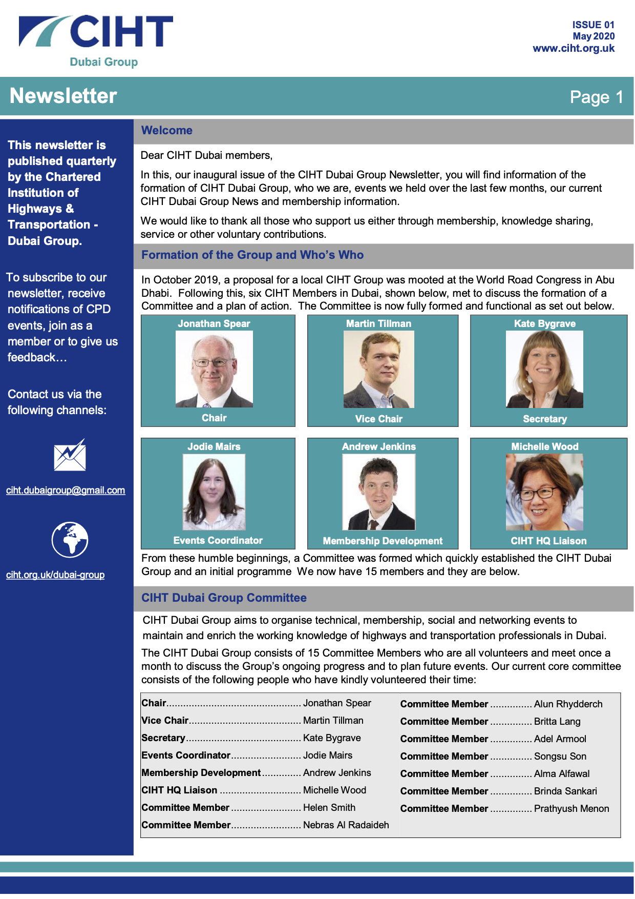 CIHT Dubai Group Newsletter Issue 1, May 2020