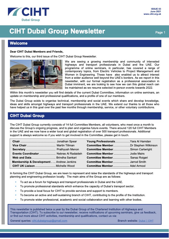 CIHT Dubai Group Newsletter Issue 3, June 2021