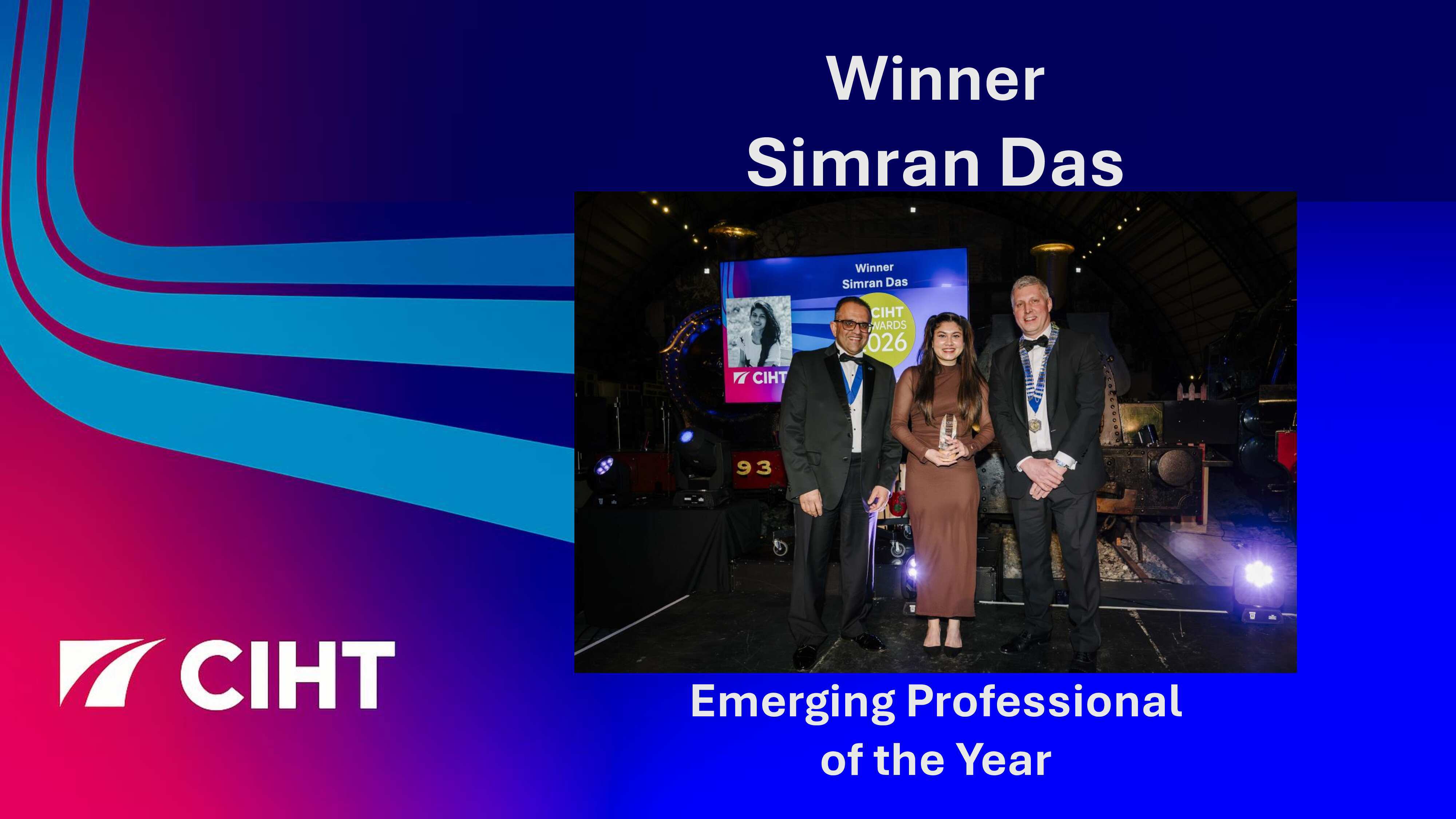 It was expertly hosted by Claire McCollum and we were delighted to be joined by Chartered Institution of Highways & Transportation (CIHT) President, Mitesh Solanki, as well as our Chief Executive, Sue Percy, who introduced the awards presentation.