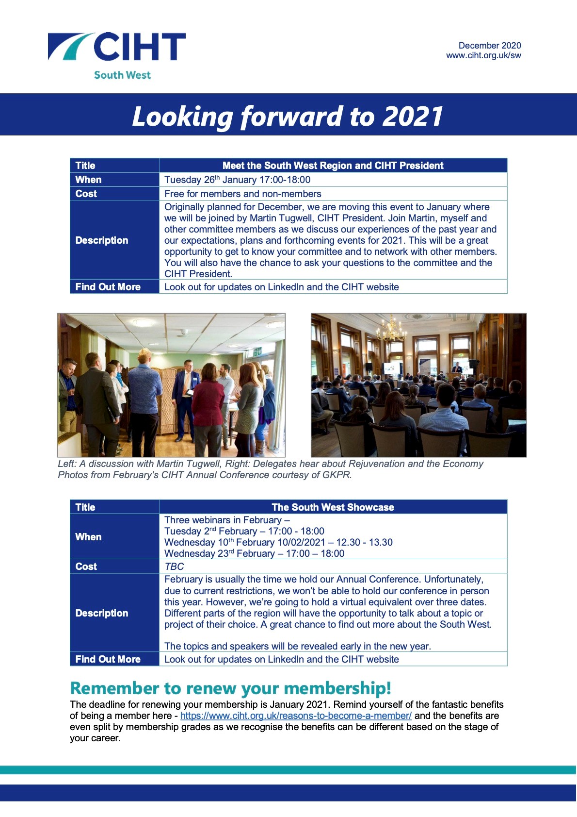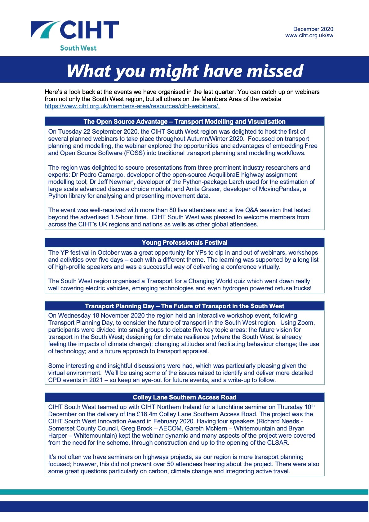 CIHT South West's December 2020 Newsletter. If you would like to become more involved with the CIHT South West committee in 2021, please contact us via southwest@ciht.org.uk.