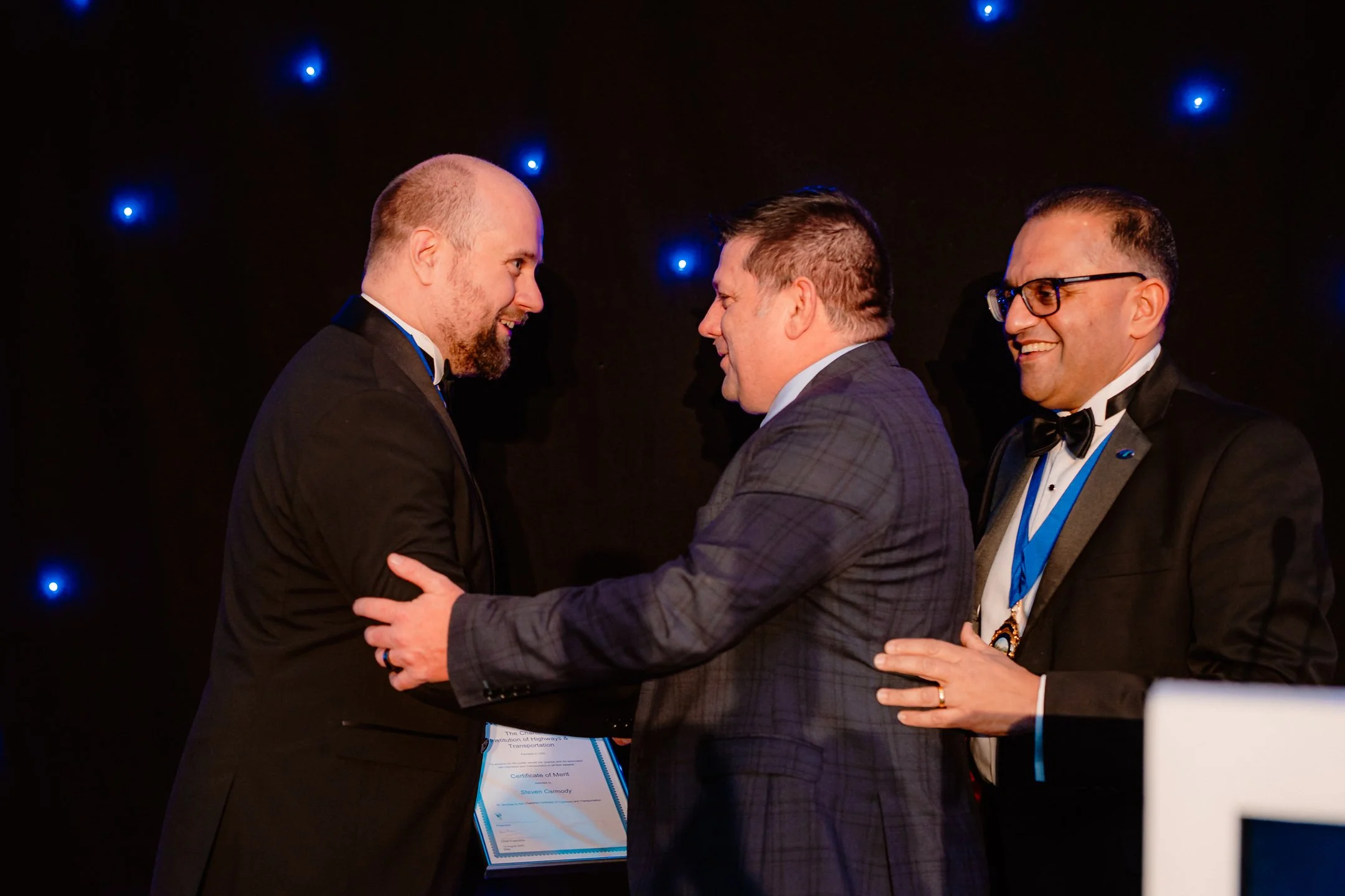 CIHT Fellow and Trustee, Steve Carmody, was presented with the prestigious Certificate of Merit at last week’s CIHT Yorkshire & the Humber Awards Dinner. The award, presented by CIHT Yorkshire & the Humber Chair, Ed Downer and CIHT President, Mitesh Solanki, came as a surprise to Steve and recognises his outstanding service to the Institution over the past decade.