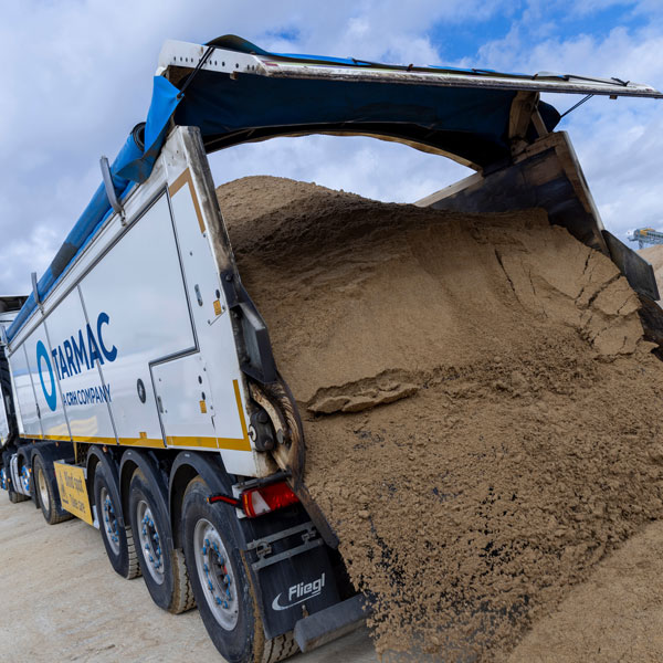The primary operational consideration is safe tipping. This requires a suitable flat area with stable ground conditions. Tarmac’s contract haulage fleet is fitted with inclinometer systems that prevent tipping on slopes greater than three degrees, alongside high voltage overhead cable detectors and raised body alarms. The tractor unit must be aligned with the trailer during discharge to ensure stability.